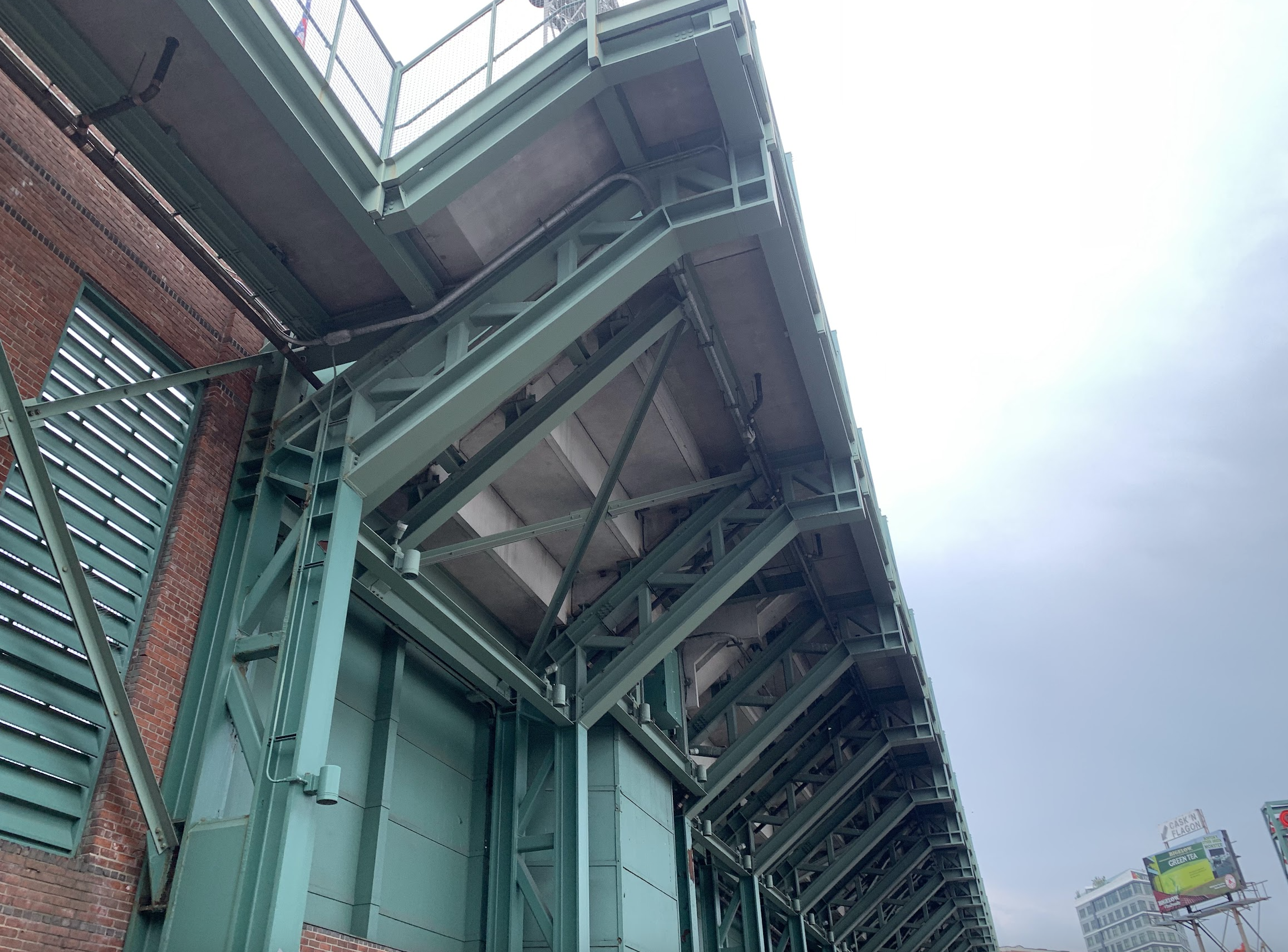 아마도 그린몬스터 뒤쪽. 초록색 페인트가 칠해진 철골 구조물들이 많다.