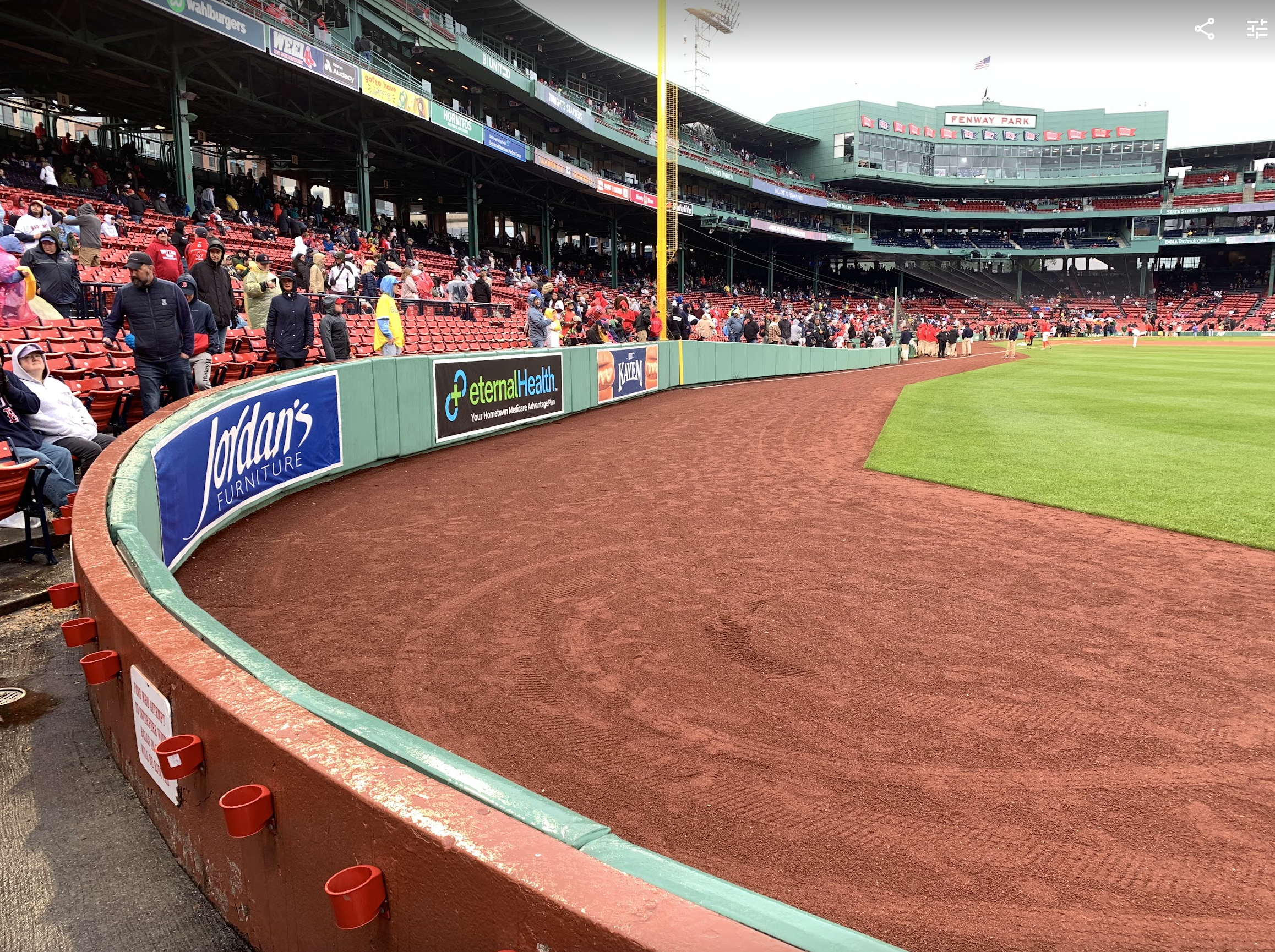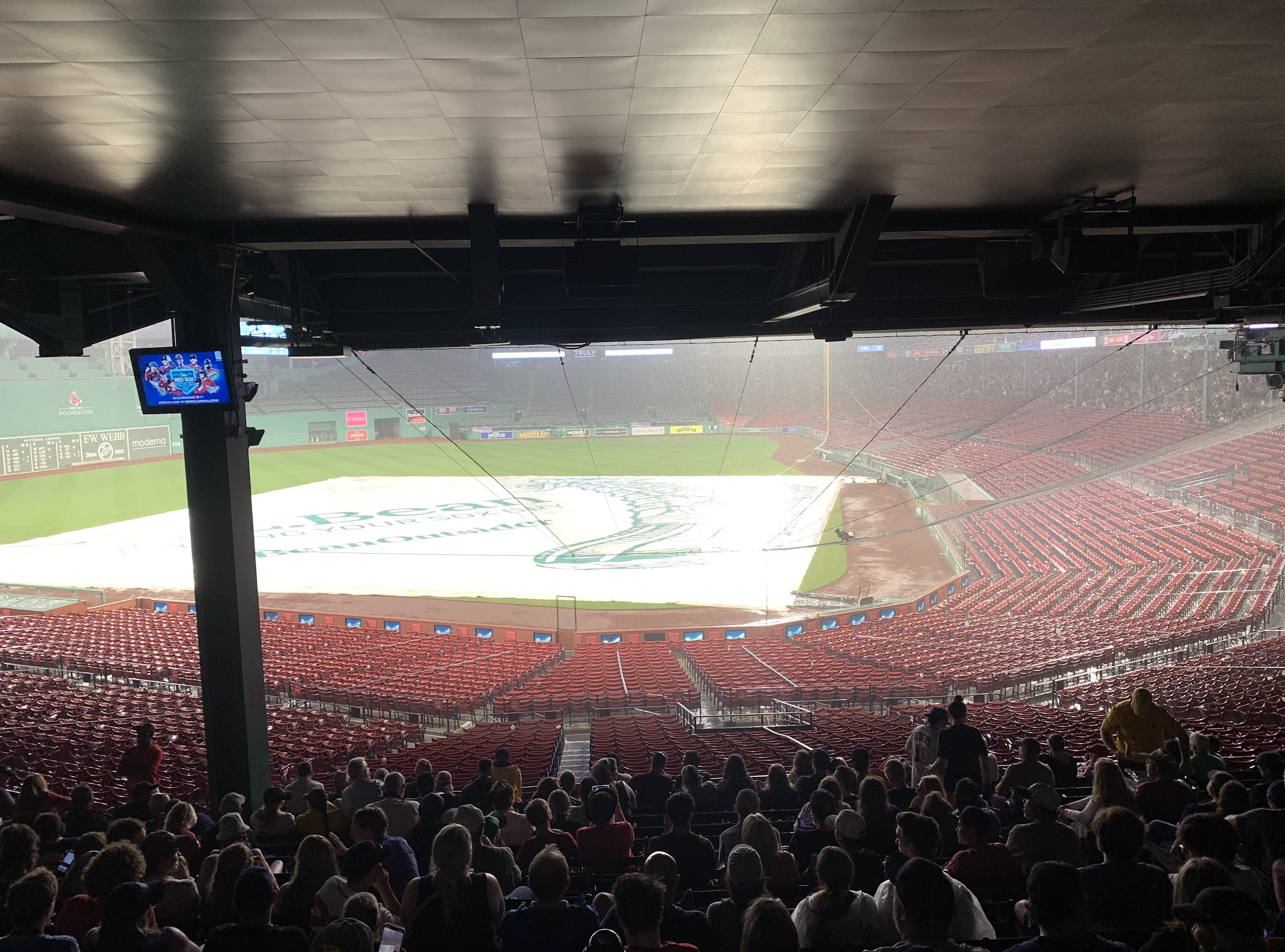 워낙 오래된 경기장이다 보니 이런 뷰도 나온다. 포수 뒤쪽 좌석 중에 특정 영역이 좀 비어있는 경우가 있었는데 이런 경우는 대부분 포수와 투수가 모두 기둥에 가리는 좌석이었다. 요즘 지은 경기장에서는 절대 있을 수 없는 일. 요즘 기술로는 기둥을 제거 할 수 있지 않을까 싶은데 그대로 두는 것도 신기했다.